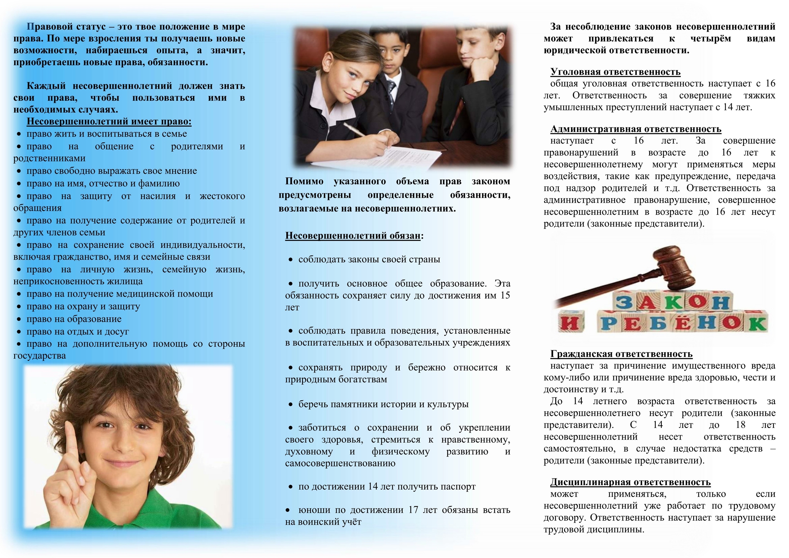 несовершеннолетних и их родителей предлагаем познакомиться с информационно-